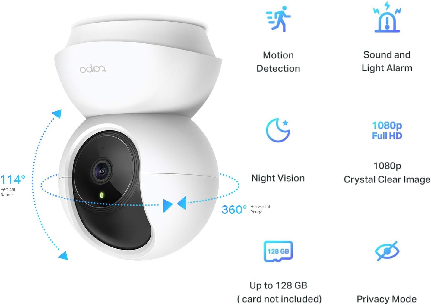 TP-Link Tapo Pan/Tilt Smart Security Camera, Indoor CCTV, 360 Rotational Views, Works with Alexa&Google Home, No Hub Required, 1080p, 2-Way Audio, Night Vision, SD Storage, Device Sharing (TC70)