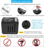 Portable and Safety: This international travel plug adapter is made of high quality flame retardant material, certified by FCC, CE and RoHS etc., safety design:integrated security shutters and separate plug lock system. Built-in10A Fuse.